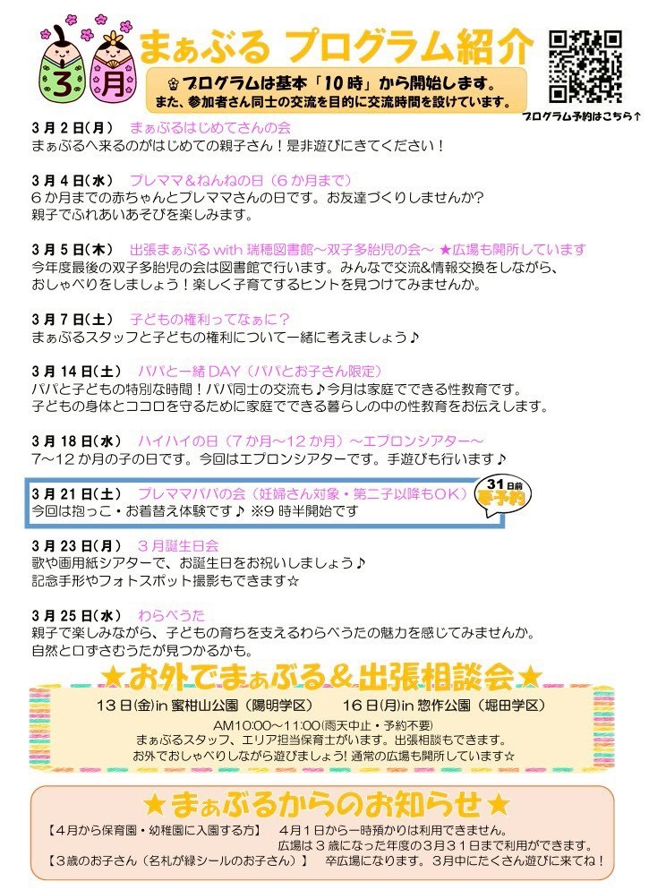 【ご利用できる方】・主に3歳未満の子どもとその保護者・妊婦さんも利用できます*原則、瑞穂区在住の方。区外の方はご相談ください。