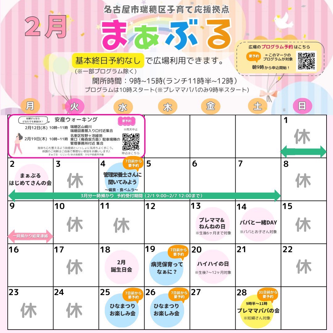 【ご利用できる方】・主に3歳未満の子どもとその保護者・妊婦さんも利用できます*原則、瑞穂区在住の方。区外の方はご相談ください。